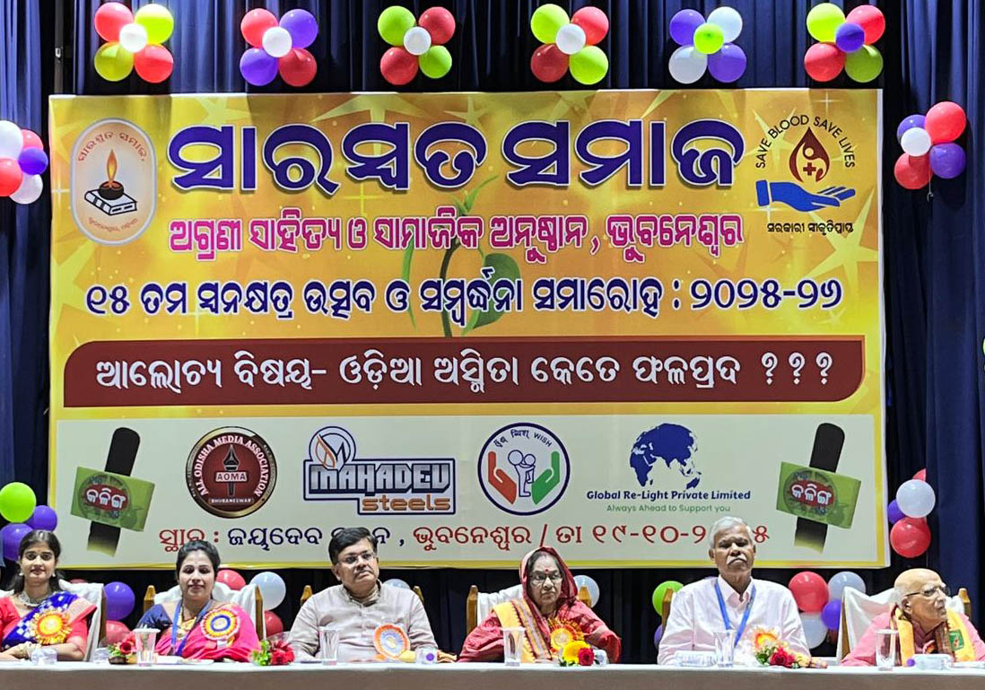 ୧୯ ତାରିଖରେ ରାଜ୍ୟର ଅଗ୍ରଣୀ ସାହିତ୍ୟ ଓ ସାମାଜିକ ଅନୁଷ୍ଠାନ ‘ସାରସ୍ୱତ ସମାଜ’ର ୧୫ ତମ ସ୍ଵନକ୍ଷତ୍ର ଉତ୍ସବ ଓ ସମ୍ବର୍ଦ୍ଧନା ସମାରୋହ ଜୟଦେବ ଭବନରେ ଅନୁଷ୍ଠିତ ହୋଇଯାଇଛି
