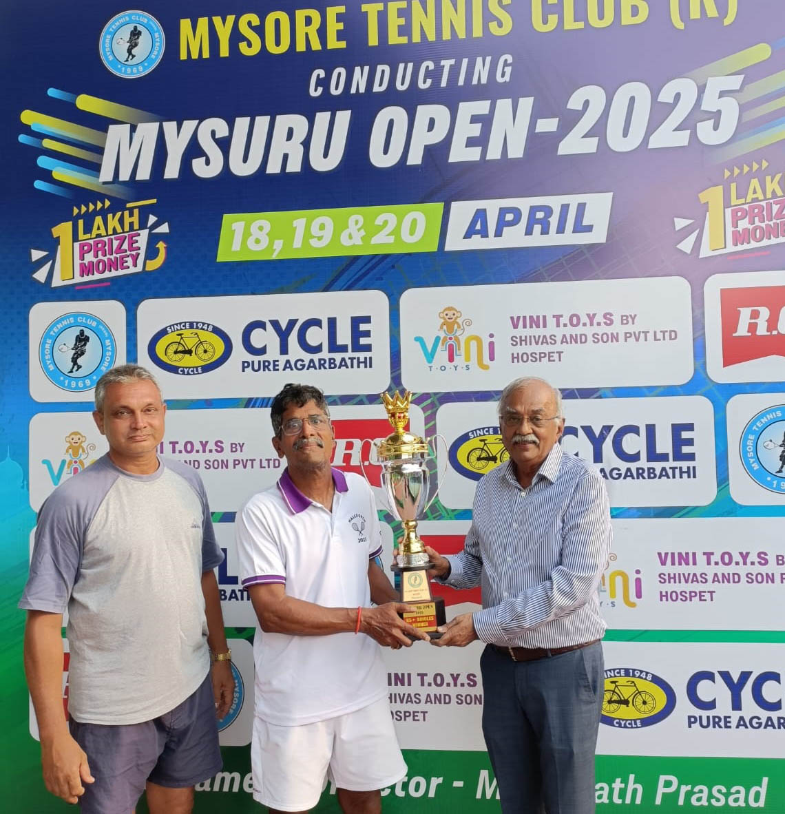 ଭୁବନେଶ୍ୱର:4/5-ଏପ୍ରିଲ 20 ତାରିଖରେ ମହୀଶୂରରେ ଶେଷ ହେଇଥିବା ସର୍ବଭାରତୀୟ ଟେନିସ ଟୁର୍ଣ୍ଣାମେଣ୍ଟରେ ଓଡିଶାର ଭେଟରାନ୍ ଟେନିସ ଖେଳାଳି ଶଶାଙ୍କ ଶେଖର ରଥ 65 ବର୍ଷ ବୟସ ବର୍ଗରେ ସିଙ୍ଗଲସରେ ଚମ୍ପିୟାନ ହୋଇଛନ୍ତି। ତା ଛଡା 65 ବୟସ ବର୍ଗରେ ଡବଲ୍ସ ରେ ମଧ୍ୟ ସେ ରନର ଅପ ହୋଇଛନ୍ତି। ତତ୍ ସଙ୍ଗେ ସଙ୍ଗେ 55 ବୟସ ବର୍ଗରେ ଡବଲ୍ସରେ ରନର ଅପ ହେଇଛନ୍ତି।