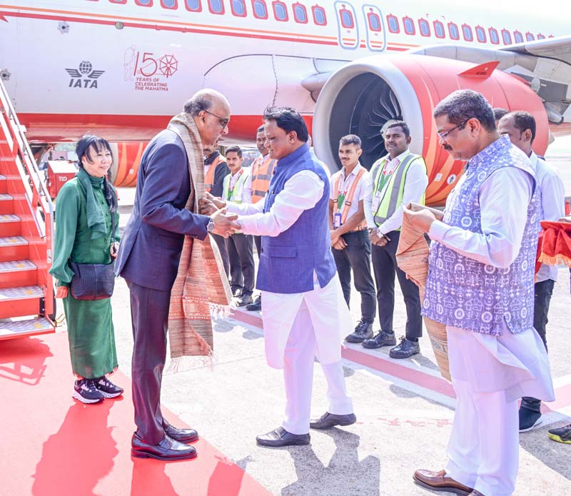 ଭୁବନେଶ୍ୱର:17.01- ସିଙ୍ଗାପୁରର ରାଷ୍ଟ୍ରପତି ମିଷ୍ଟର୍ ଥର୍ମନ୍ ସନ୍ମୁଗରତ୍ନମଙ୍କୁ ମୁଖ୍ୟମନ୍ତ୍ରୀ  ମୋହନ ଚରଣ ମାଝୀ ଏବଂ କେନ୍ଦ୍ର ଶିକ୍ଷାମନ୍ତ୍ରୀ  ଧର୍ମେନ୍ଦ୍ର ପ୍ରଧାନ ଭୁବନେଶ୍ୱର ବିମାନ ବନ୍ଦର ଠାରେ ସ୍ୱାଗତ କରୁଛନ୍ତି।