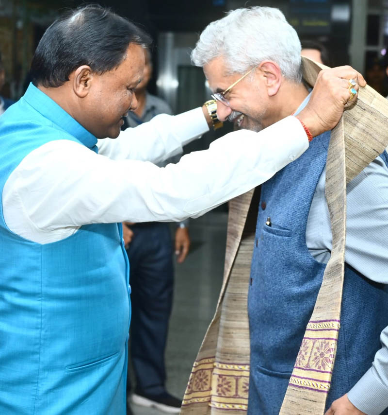 ମୁଖ୍ୟମନ୍ତ୍ରୀ ମୋହନ ଚରଣ ମାଝୀ ଭୁବନେଶ୍ୱର ବିମାନ ବନ୍ଦର ଠାରେ ବୈଦେଶିକ ବ୍ୟାପାର ମନ୍ତ୍ରୀ ଡକ୍ଟର ଏସ. ଜୟଶଙ୍କରଙ୍କୁ ସ୍ଵାଗତ କରୁଛନ୍ତି