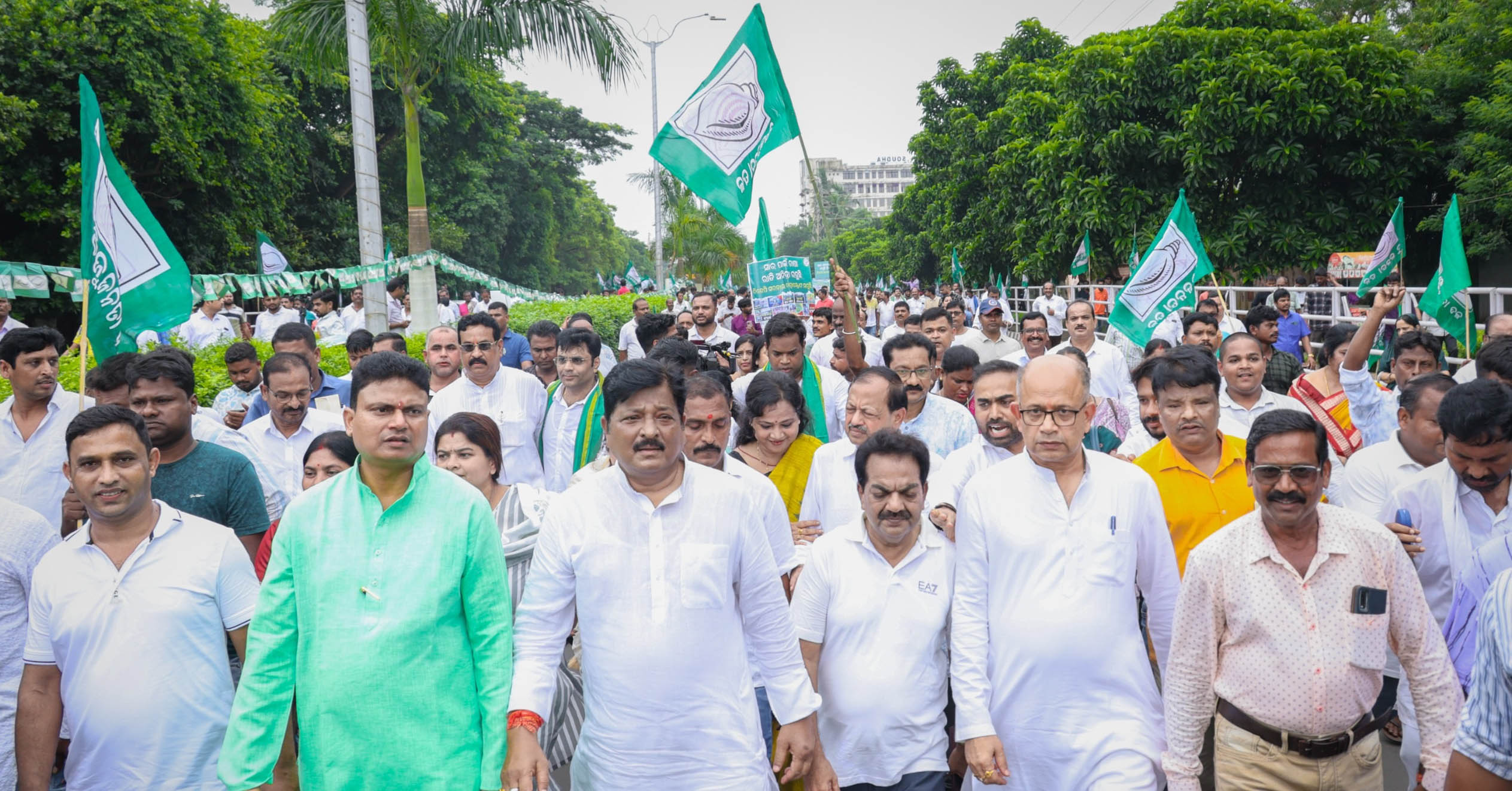 ଭୁବନେଶ୍ୱର, ୧୫/୦୯/୨୦୨୫: ରାଜ୍ୟରେ ସାରର ଅଭାବ ଯୋଗୁଁ ଚାଷୀ ମାନେ ହନ୍ତସନ୍ତ ହେଉଥିବା ଅଭିଯୋଗ କରି ବିଜୁ ଜନତା ଦଳ ଆଜି ରାଜଭବନ ସମ୍ମୁଖରେ ବିଶାଳ ଗଣଧାରଣା କରି ରାଜ୍ୟ ସରକାରଙ୍କ ଉପରେ ବର୍ଷିଛି। ଖରିଫ ଚାଷ କାମ ଶୀର୍ଷରେ ଥିବାବେଳେ ରାଜ୍ୟ ସରକାର ସାର ଯୋଗାଇବାରେ ସମ୍ପୂର୍ଣ୍ଣ ବିଫଳ ହୋଇଛନ୍ତି । ରାଜ୍ୟରେ ଖରିଫ ଧାନ ଅଧିକ ଉତ୍ପାଦନ ହେଲେ ସରକାରଙ୍କୁ ଅଧିକ ବୋନସ ଦେବାକୁ ହେବ ବୋଲି ସରକାର ଖରିଫ ଧାନ ଉତ୍ପାଦନରେ ରୋକ ଲଗାଇବା ପାଇଁ ସାର ଯୋଗାଣ ଅଭାବର ଷଡ଼ଯନ୍ତ୍ର ରଚିଛନ୍ତି ବୋଲି ବିଜେଡି ଅଭିଯୋଗ କରିଛି ।