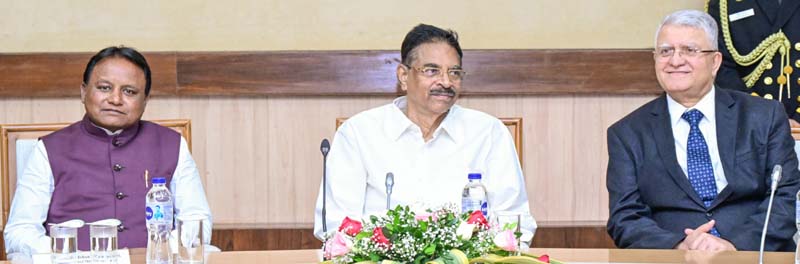 Bhubaneswar:16/01/25-Governor Dr Haribabu Kambhampati and Chief Minister Mohan Charan Majhi in a farewell meeting for Chief Justice of Orissa High Court  Justice Chakradhari Sharan Singh at Lok Seva Bhawan convention centre on 16 January 2025