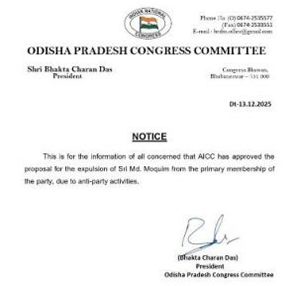 ଭୁବନେଶ୍ୱର:୧୫/୧୨-କଂଗ୍ରେସର ପୂର୍ବତନ ବିଧାୟକ ମହମ୍ମଦ ମୋକିମଙ୍କୁ ହାଇକମାଣ୍ଡ ଦଳର ପ୍ରାଥମିକ ସଦସ୍ୟ ପଦରୁ ବହିଷ୍କାର କରିଛନ୍ତି। ହାଇକମାଣ୍ଡଙ୍କୁ ଚାଲେଞ୍ଜ କରି ସେ ବହିଷ୍କୃତ ହୋଇଛନ୍ତି। ଦଳ ବିରୋଧୀ କାର୍ଯ୍ୟ ପାଇଁ ତାଙ୍କ ବିରୋଧରେ ଏହି କାର୍ଯ୍ୟାନୁଷ୍ଠାନ ଗ୍ରହଣ କରାଯାଇଥିବା ପିସିସି ସଭାପତିଙ୍କ ସ୍ୱାକ୍ଷରରେ ଜାରି ନୋଟିସରେ ଉଲ୍ଲେଖ କରାଯାଇଛି। ଦଳରୁ ବହିଷ୍କୃତ ହେବା ପରେ ମୋକିମ୍ ପ୍ରତିକ୍ରିୟା ରଖି କହିଛନ୍ତି ଯେ ‘ମୁଁ କିଛି ଭୁଲ୍ କରିନି। ମୁଁ ରାଜନୀତି କରୁଛି, ଏବେ ବି କରିବି। ବହିଷ୍କାର ନିଷ୍ପତ୍ତିକୁ ସେ ଗ୍ରହଣ କରିଛନ୍ତି। ସେ କହିଛନ୍ତି, ଆମେ ରାହୁଲଙ୍କୁ ଅନୁସୁରଣ କରୁଥିଲୁ। ରାହୁଳ କୁହନ୍ତି କଂଗ୍ରେସ କର୍ମୀ କାହାକୁ ଡରନ୍ତିନି। ତେଣୁ ମୁଁ କାହାକୁ ନ ଡରି ଚିଠି ଲେଖିଥିଲି। ମୁଁ ଯାହା କରିଛି ସେଥିରେ ମୋର ଅନୁଶୋଚନା ନାହିଁ। ଏବେ ନହେଲେ ନାହିଁ ପରବର୍ତ୍ତୀ ସମୟରେ କଂଗ୍ରେସ ପଦକ୍ଷେପ ନେବ ବୋଲି ସେ କହିଛନ୍ତି।
