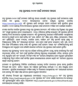 ପଦ୍ମ ପୁରସ୍କାର 2026 ପାଇଁ ନାମାଙ୍କନ ଆରମ୍ଭ