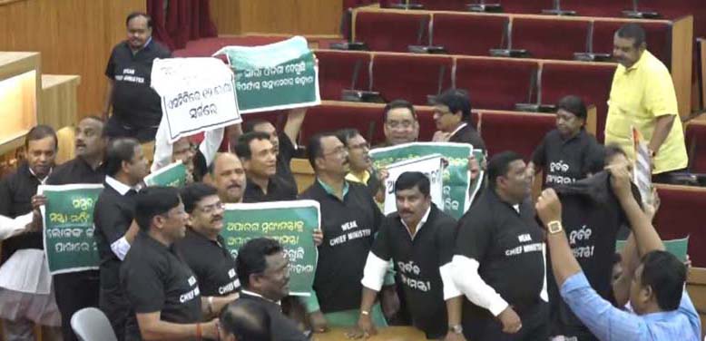 ପ୍ରଶ୍ନକାଳ ମାତ୍ର ତିନି ମିନିଟ ଚାଲିଥିଲା। ଗୃହ ୧୧.୩୦ ପର୍ଯ୍ୟନ୍ତ ମୁଲତବୀ ହେବା ପରେ ବିରୋଧୀ ସଦସ୍ୟମାନେ କଳା ଟି-ସାର୍ଟ ପିନ୍ଧି ବିଧାନସଭା ପରିକ୍ରମା କରି ସରକାର ବିରୋଧୀ ସ୍ଲୋଗାନ ଦେଇଥିଲେ। ଶୂନ୍ୟକାଳରେ ସେମାନେ ହଟ୍ଟଗୋଳ କରି କକ୍ଷତ୍ୟାଗ କରିଥିଲେ। ବିରୋଧୀଙ୍କ ଅନୁପସ୍ଥିତିରେ ମୁଖ୍ୟମନ୍ତ୍ରୀ ଗୃହ ଓ ସାଧାରଣ ପ୍ରଶାସନ ବିଭାଗର ଖର୍ଚ୍ଚଦାବୀ ଆଗତ କରିଥିଲେ। ବିରୋଧୀ ଦଳର ଏଭଳି କାର୍ଯ୍ୟକୁ ପୂର୍ତ୍ତ ଓ ଆଇନ ମନ୍ତ୍ରୀ ପୃଥ୍ୱୀରାଜ ହରିଚନ୍ଦନ ତୀବ୍ର ସମାଲୋଚନା କରିଥିଲେ। ସେ କହିଥିଲେ, ପ୍ରତିଦିନ ପ୍ରାୟ ୬୮ରୁ ୭୦ ଲକ୍ଷ ଟଙ୍କା ଖର୍ଚ୍ଚ ହେଉଛି। ବିଧାନସଭା ବନ୍ଦ କରି ୧୨ କୋଟି ଟଙ୍କା ରାଜସ୍ୱ ନଷ୍ଟ ହେଲାଣି।