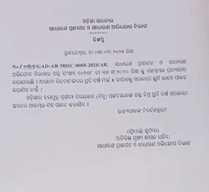 ପଞ୍ଚାୟତିରାଜ ଦିବସ ଅପ୍ରେଲ ୨୪ରେ ପାଳନ କରାଯିବ, ମାର୍ଚ୍ଚ ୫ ତାରିଖ ଛୁଟି ବାତିଲ
