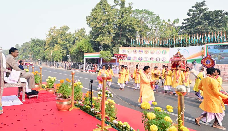 ଏହା ପରେ ରାଜ୍ୟ ସରକାରଙ୍କ ବିଭିନ୍ନ ଯୋଜନା ଓ କାର୍ଯ୍ୟକ୍ରମ ସହ ସଚେତନତାର ବାର୍ତ୍ତା ବହନ କରୁଥିବା ପ୍ରଜ୍ଞାପନ ମେଢ଼ଗୁଡ଼ିକ ଅଭିବାଦନ ମଞ୍ଚ ଅତିକ୍ରମ କରିଥିଲେ । ଏହି ଭବ୍ୟ ସମାରୋହରେ ରାଜ୍ୟପାଳଙ୍କ ସହଧର୍ମିଣୀ ତଥା ରାଜ୍ୟର ପ୍ରଥମ ମହିଳା ଜୟଶ୍ରୀ କମ୍ଭମ୍ପାଟି ଏବଂ ମୁଖ୍ୟମନ୍ତ୍ରୀଙ୍କ ସହଧର୍ମିଣୀ ପ୍ରିୟଙ୍କା ମାର୍ଣ୍ଡି ଉପସ୍ଥିତ ଥିଲେ । ବିଭିନ୍ନ ବିଭାଗର ଅତିରିକ୍ତ ଶାସନ ସଚିବ, ପ୍ରମୁଖ ଶାସନ ସଚିବ ଓ ଶାସନ ସଚିବ, ବରିଷ୍ଠ ପୋଲିସ ଅଧିକାରୀ, ସୂଚନା ଓ ଲୋକସଂପର୍କ ବିଭାଗର ନିର୍ଦ୍ଦେଶକ ଅନୁଜ କୁମାର ଦାସ ପଟ୍ଟନାୟକ, ନିର୍ଦ୍ଦେଶକ (ବୈଷୟିକ) ଶ୍ରୀ ଗୁରୁବୀର ସିଂ ପ୍ରମୁଖଙ୍କ ସମେତ ରାଜ୍ୟ ପ୍ରଶାସନର ବରିଷ୍ଠ ଅଧିକାରୀବୃନ୍ଦ, ସାଧାରଣତନ୍ତ୍ର ଦିବସ ଉତ୍ସବରେ ଉପସ୍ଥିତ ଥିଲେ ।