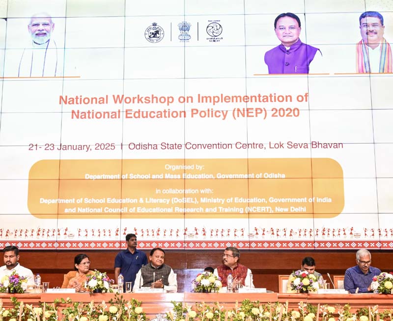 ଭୁବନେଶ୍ୱର:21 ଜାନୁଆରୀ-ଲୋକସେବା ଭବନ କନ୍‌ଭେନ୍‍ସନ୍ ସେଣ୍ଟରରେ ନୂଆ ଶିକ୍ଷା ନୀତି-2020 ସମ୍ପର୍କିତ ଏକ ତିନି ଦିନିଆ ଜାତୀୟ କର୍ମଶାଳାର ଶୁଭାରମ୍ଭ ହୋଇଛି। ଏଥିରେ ମୁଖ୍ୟମନ୍ତ୍ରୀ ମୋହନ ଚରଣ ମାଝୀ ଓ କେନ୍ଦ୍ର ଶିକ୍ଷାମନ୍ତ୍ରୀ ଧର୍ମେନ୍ଦ୍ର ପ୍ରଧାନ ଯୋଗଦେଇ ଓଡିଶାରେ ଏହାର କାର୍ଯ୍ୟକାରିତା ସମ୍ପର୍କରେ ଆଭିମୁଖ୍ୟ ରଖିଛନ୍ତି।